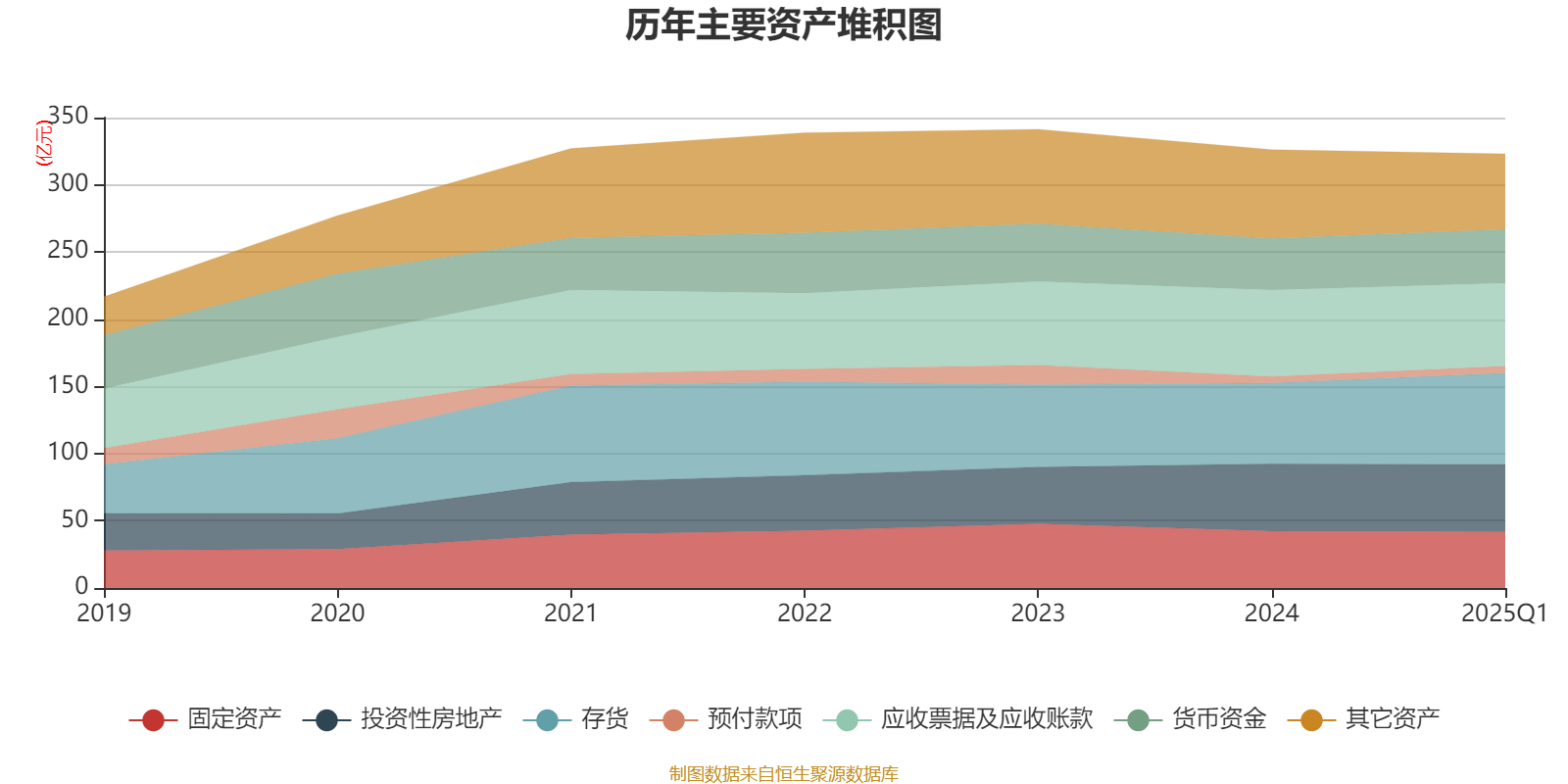 资产重大变化方面,截至2025年一季度末,公司存货较上年末增加13.31%,占公司总资产比重上升2.66个百分点;交易性金融资产合计较上年末减少55.28%,占公司总资产比重下降2.6个百分点;应收票据及应收账款较上年末减少4.15%,占公司总资产比重下降0.64个百分点;货币资金较上年末增加4.34%,占公司总资产比重上升0.63个百分点。