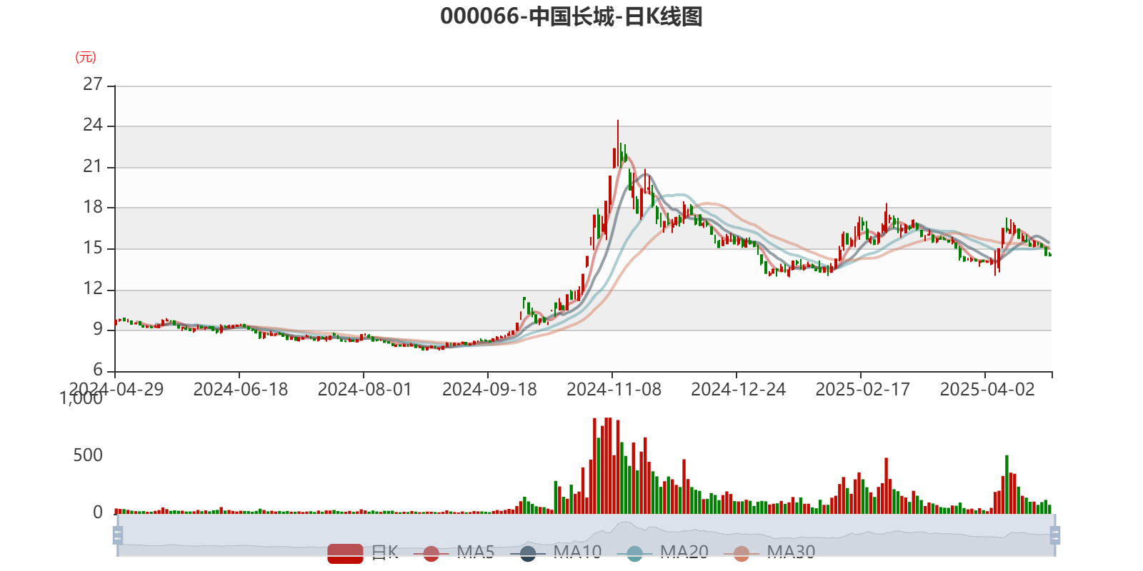 以4月25日收盘价计算,中国长城目前市盈率(TTM)约为-33.72倍,市净率(LF)约4.28倍,市销率(TTM)约3.25倍。