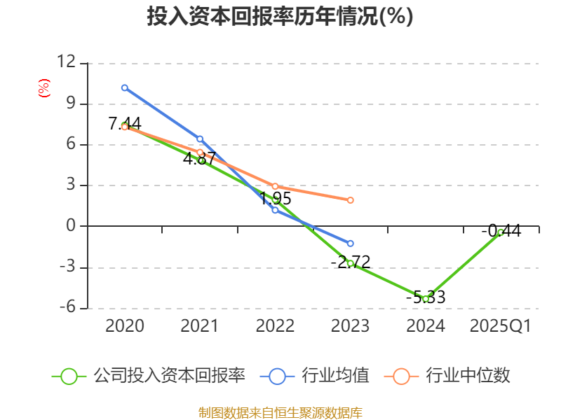 盈利能力方面, 2025年一季度公司加权平均净资产收益率为-1.44%,同比上升0.56个百分点。公司2025年第一季度投入资本回报率为-0.44%,较上年同期上升0.39个百分点。