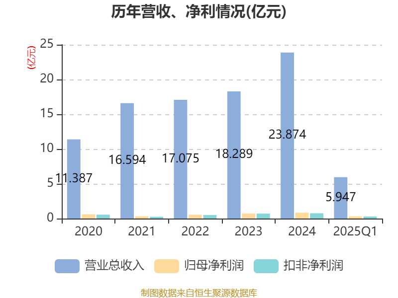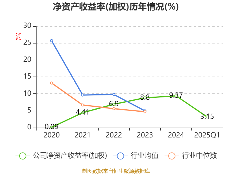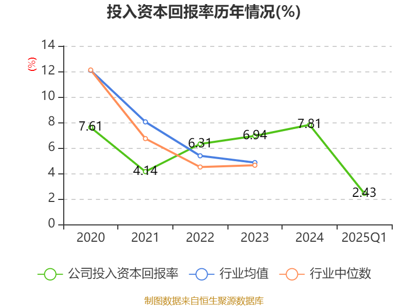 盈利能力方面, 2025年一季度公司加权平均净资产收益率为3.15%,同比上升0.55个百分点。公司2025年第一季度投入资本回报率为2.43%,较上年同期上升0.28个百分点。