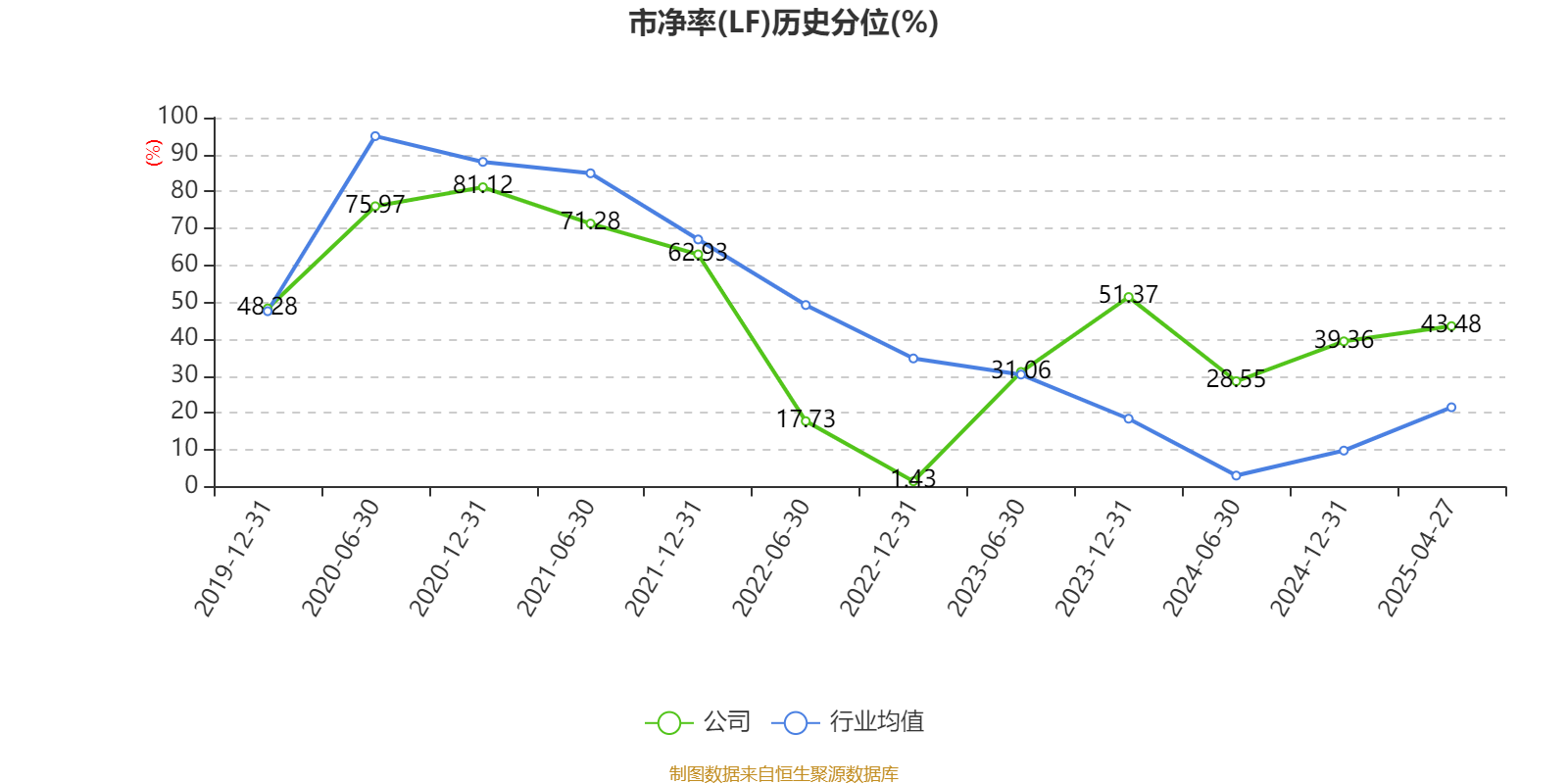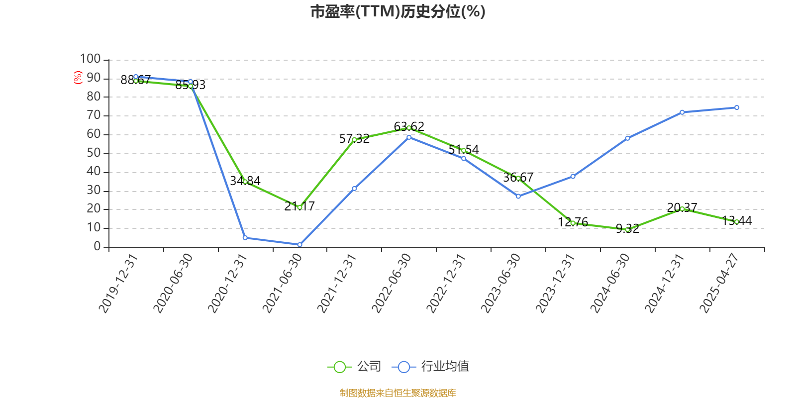 市盈率、市净率为负时,不显示当期分位数,会导致折线图中断。