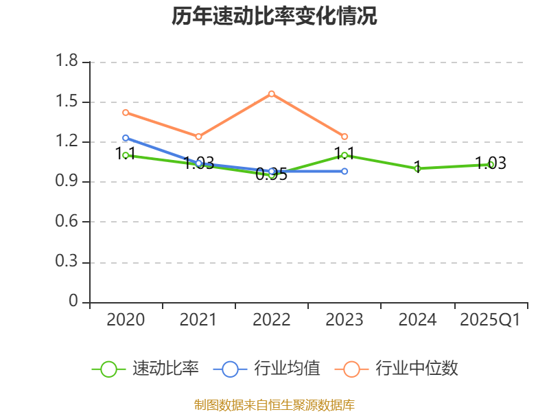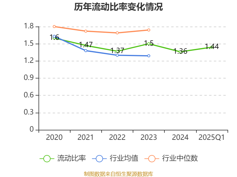 2025年第一季度,公司流动比率为1.44,速动比率为1.03。