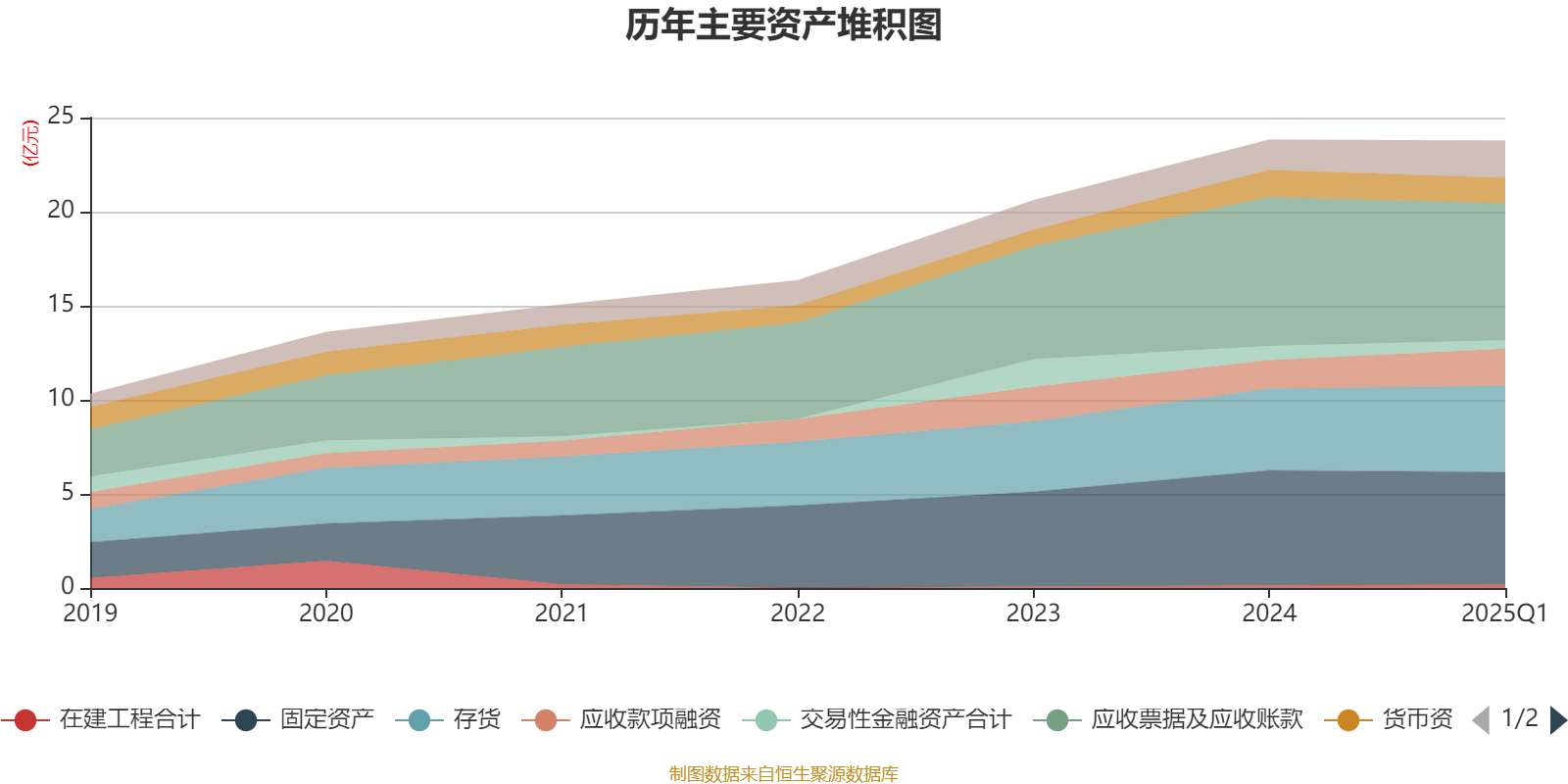 资产重大变化方面,截至2025年一季度末,公司应收票据及应收账款较上年末减少8.08%,占公司总资产比重下降2.62个百分点;应收款项融资较上年末增加31.36%,占公司总资产比重上升2个百分点;交易性金融资产合计较上年末减少40.26%,占公司总资产比重下降1.28个百分点;存货较上年末增加5.12%,占公司总资产比重上升0.97个百分点。