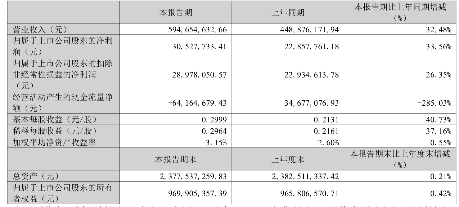 中证智能财讯南京聚隆(300644)4月28日披露2025年第一季度报告。公司实现营业总收入5.95亿元,同比增长32.48%;归母净利润3052.77万元,同比增长33.56%;扣非净利润2897.81万元,同比增长26.35%;经营活动产生的现金流量净额为-6416.47万元,上年同期为3467.71万元;报告期内,南京聚隆基本每股收益为0.2999元,加权平均净资产收益率为3.15%。