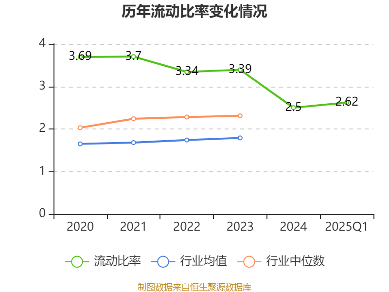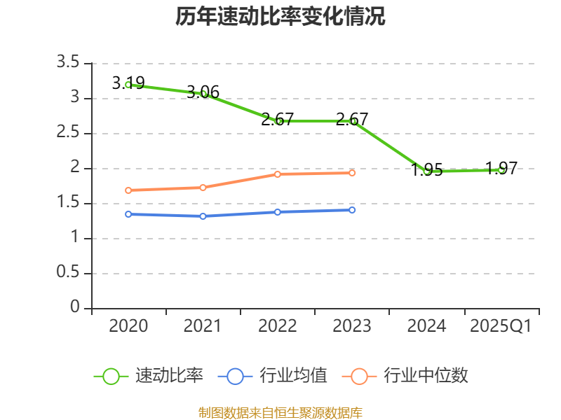 2025年第一季度,公司流动比率为2.62,速动比率为1.97。