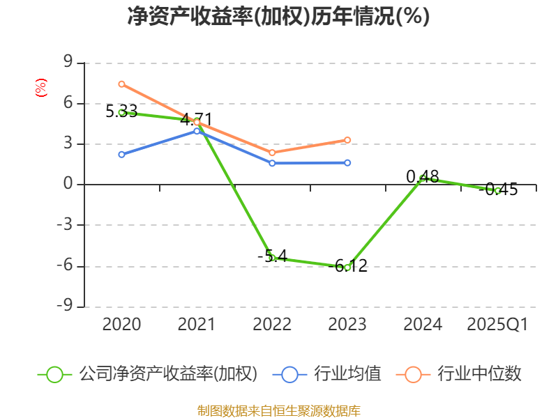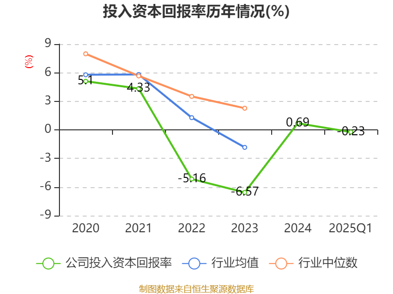 盈利能力方面, 2025年一季度公司加权平均净资产收益率为-0.45%,同比下降0.52个百分点。公司2025年第一季度投入资本回报率为-0.23%,较上年同期下降0.12个百分点。