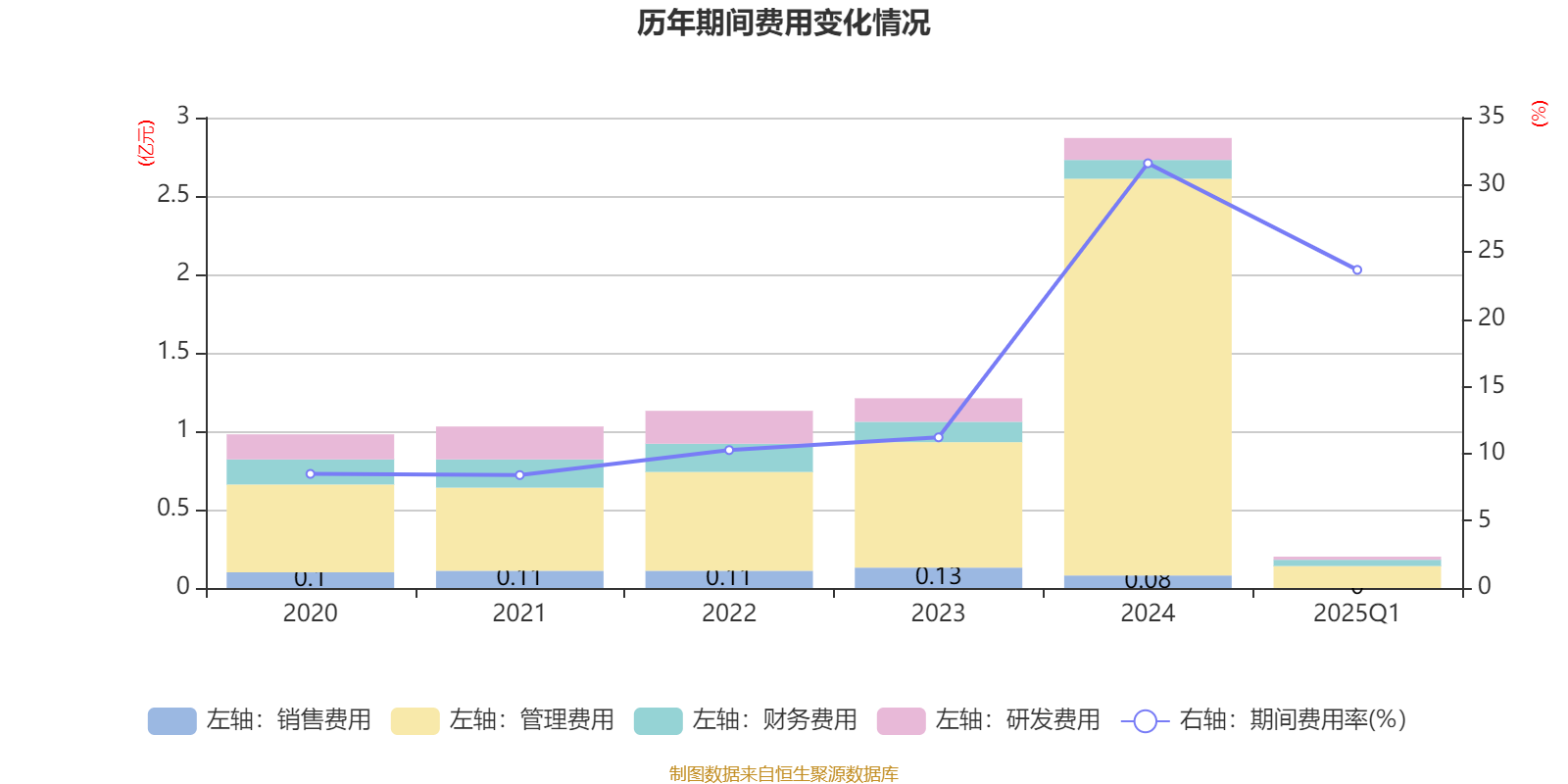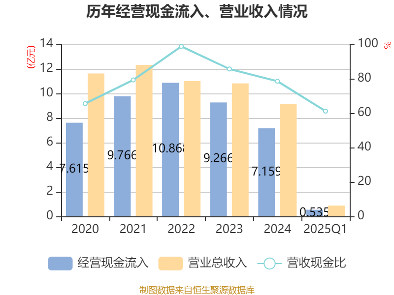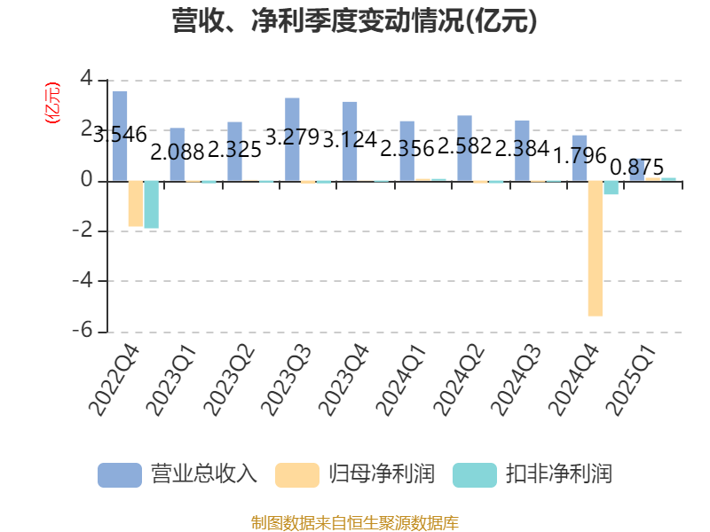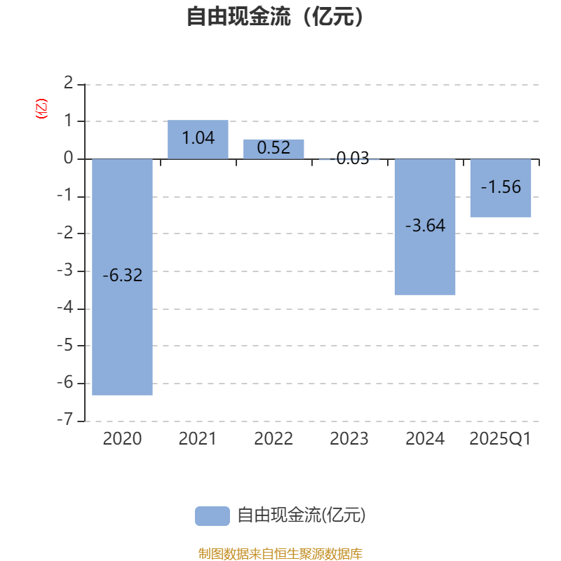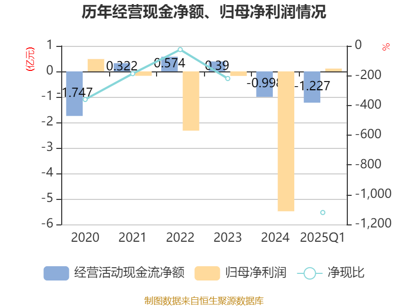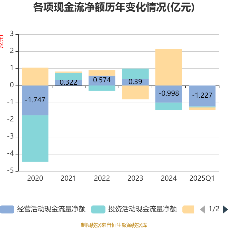 截至2025年一季度末,公司经营活动现金流净额为-1.23亿元,同比减少7847.05万元;筹资活动现金流净额-1646.32万元,同比增加6615.66万元;投资活动现金流净额-564.39万元,上年同期为-562.93万元。