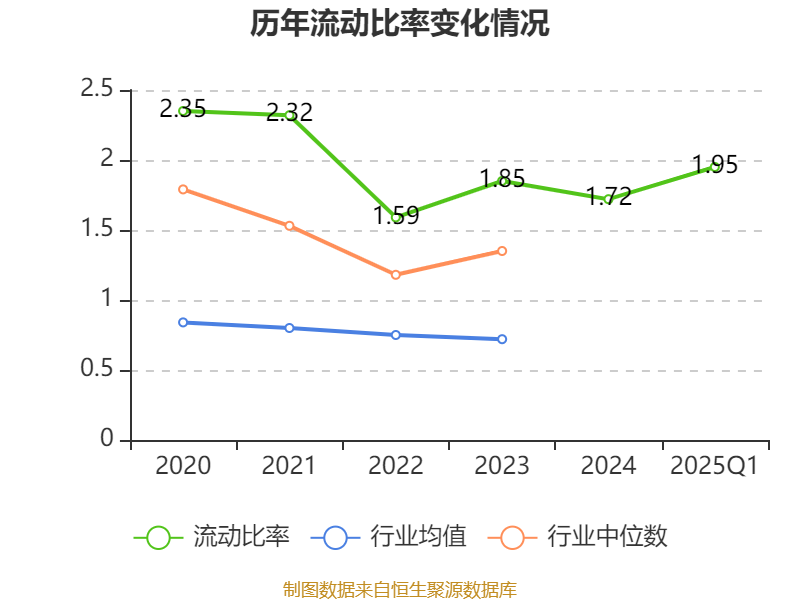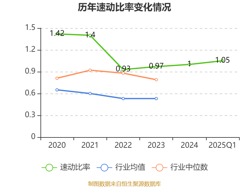 2025年第一季度,公司流动比率为1.95,速动比率为1.05。