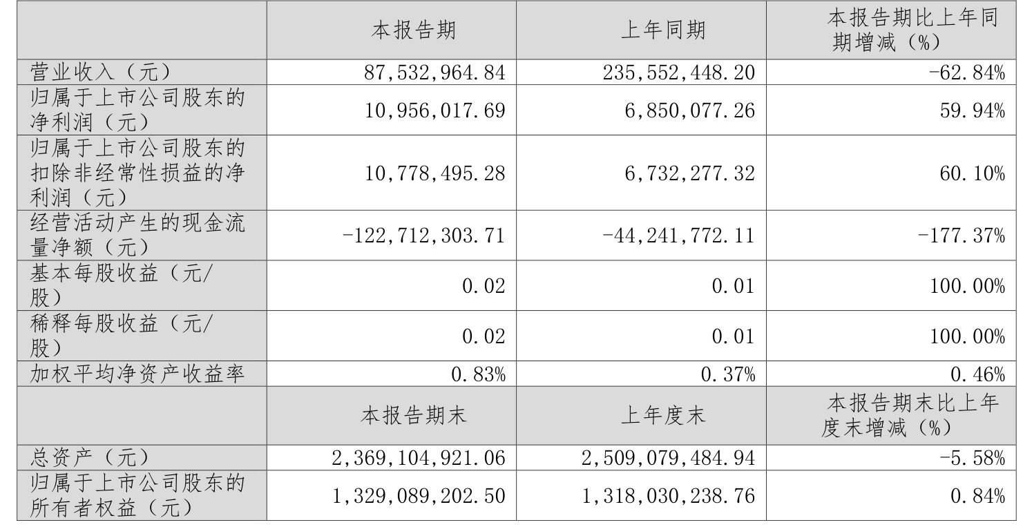 中证智能财讯美利云(000815)4月28日披露2025年第一季度报告。公司实现营业总收入8753.3万元,同比下降62.84%;归母净利润1095.6万元,同比增长59.94%;扣非净利润1077.85万元,同比增长60.10%;经营活动产生的现金流量净额为-1.23亿元,上年同期为-4424.18万元;报告期内,美利云基本每股收益为0.02元,加权平均净资产收益率为0.83%。
