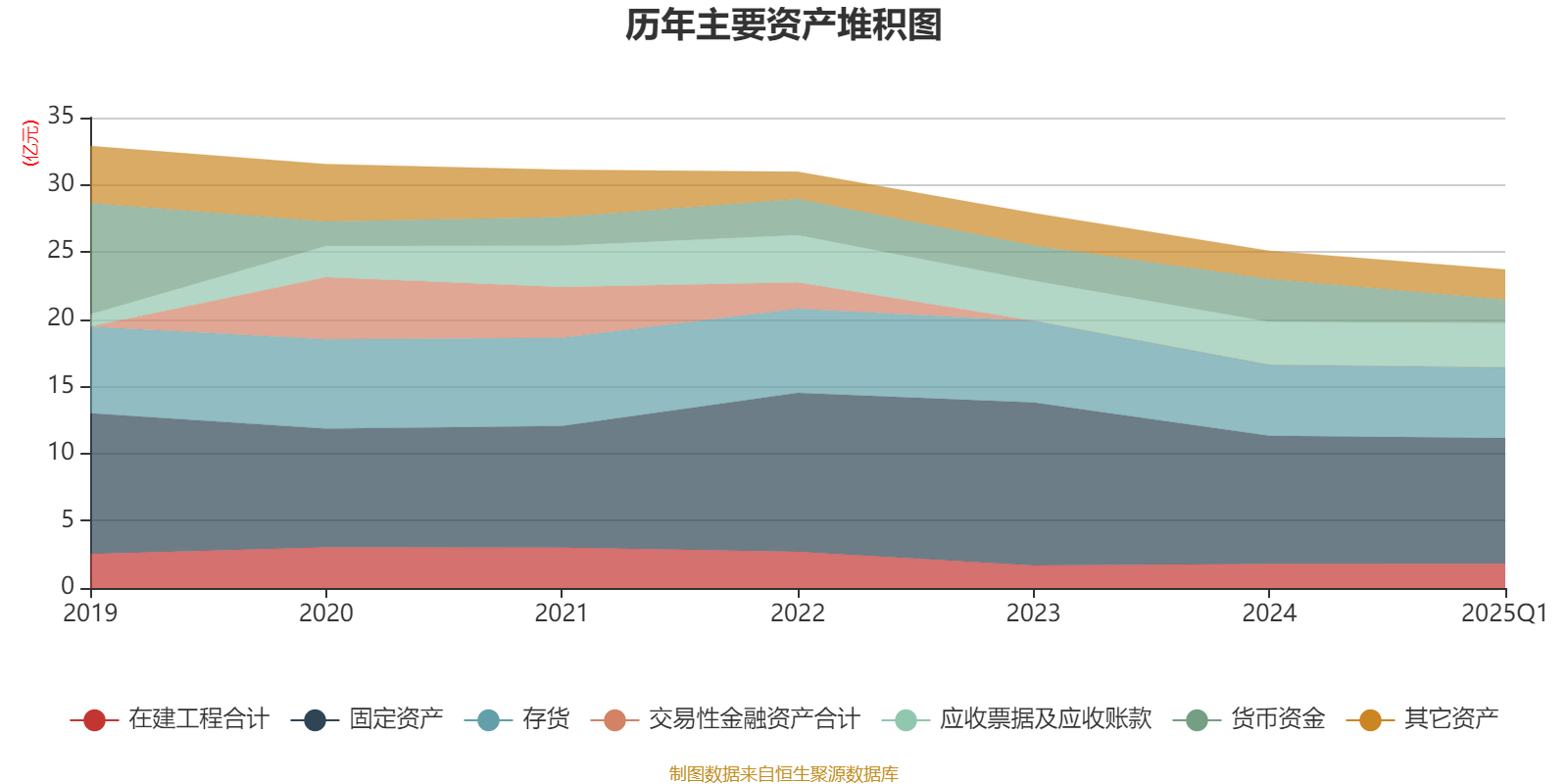 资产重大变化方面,截至2025年一季度末,公司货币资金较上年末减少45.21%,占公司总资产比重下降5.36个百分点;固定资产较上年末减少1.86%,占公司总资产比重上升1.49个百分点;存货较上年末减少0.36%,占公司总资产比重上升1.16个百分点;应收票据及应收账款较上年末增加3%,占公司总资产比重上升1.16个百分点。