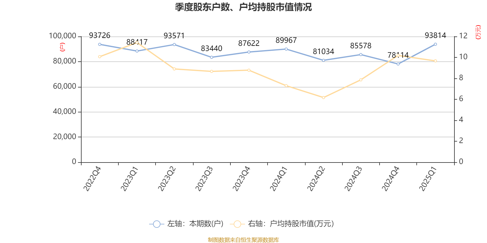 一季报显示,2025年一季度末的公司十大流通股东中,新进股东为香港中央结算有限公司、刘宗辉、章全美,取代了上年末的张仪静、王锋、李爱儿。在具体持股比例上,章娉娉、王玲、史万锋持股有所上升。