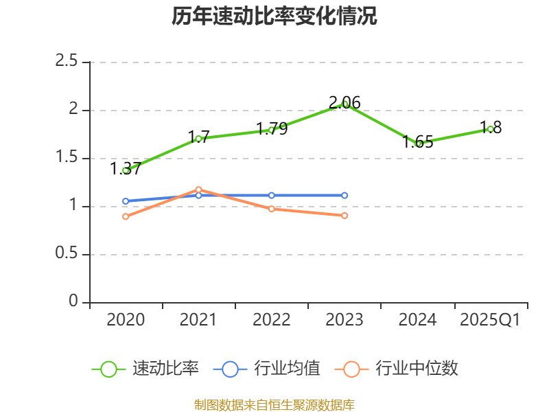 2025年第一季度,公司流动比率为1.82,速动比率为1.8。
