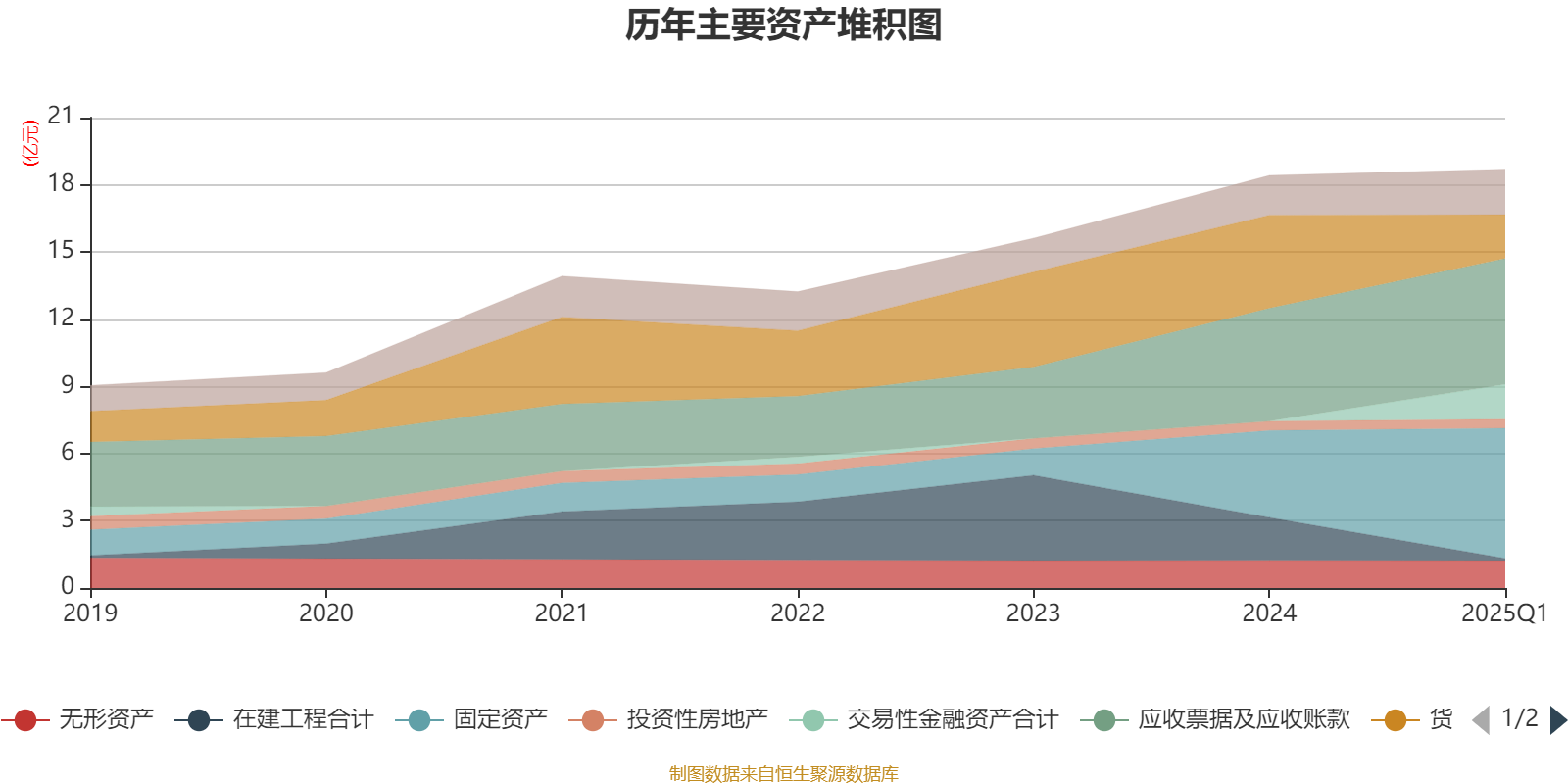 资产重大变化方面,截至2025年一季度末,公司货币资金较上年末减少53.07%,占公司总资产比重下降12.15个百分点;固定资产较上年末增加49.75%,占公司总资产比重上升10个百分点;在建工程合计较上年末减少94.98%,占公司总资产比重下降9.9个百分点;交易性金融资产合计占公司总资产的8.31%,上年末为0。