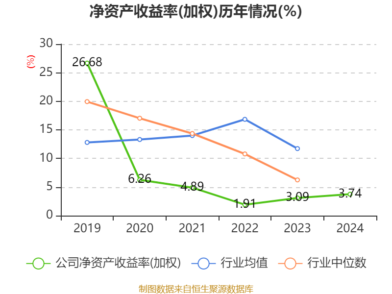 数据显示,2024年公司加权平均净资产收益率为3.74%,较上年同期上升0.65个百分点。公司2024年投入资本回报率为2.83%,较上年同期上升0.41个百分点。