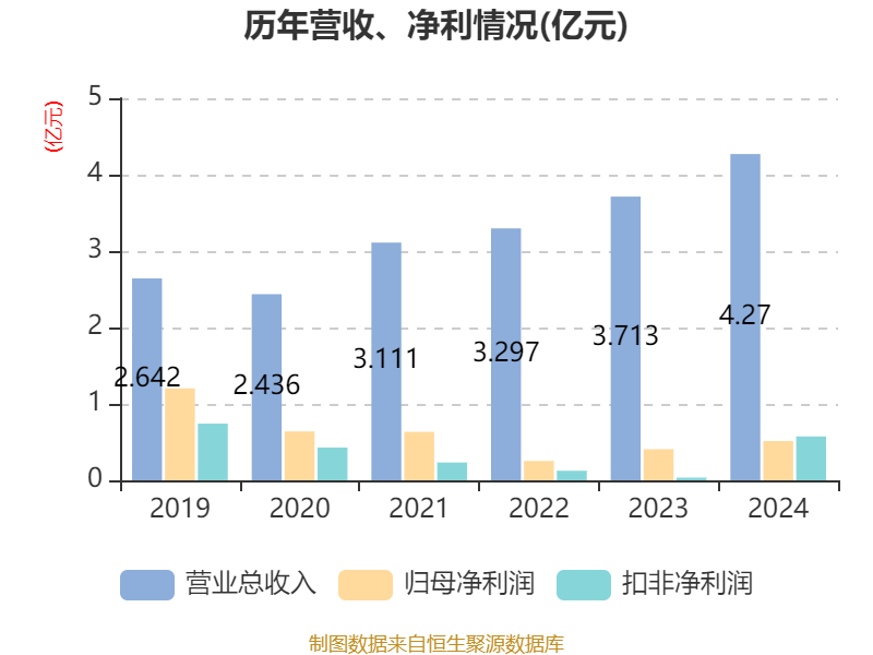 中证智能财讯成都先导(688222)4月26日披露2024年年度报告。2024年,公司实现营业总收入4.27亿元,同比增长14.99%;归母净利润5135.71万元,同比增长26.13%;扣非净利润5743.72万元,同比增长1563.94%;经营活动产生的现金流量净额为1.28亿元,同比增长2.24%;报告期内,成都先导基本每股收益为0.13元,加权平均净资产收益率为3.74%。公司2024年度分配预案为:拟向全体股东每10股派现0.6元(含税)。