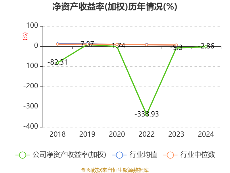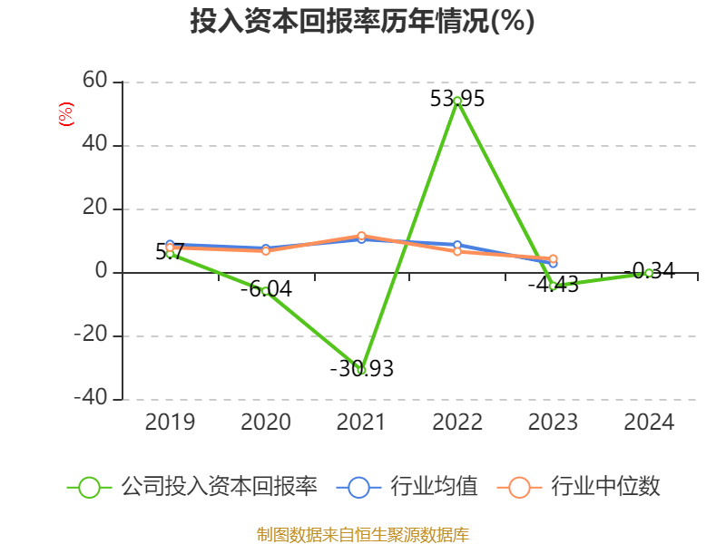 数据显示,2024年公司加权平均净资产收益率为-2.86%,较上年同期上升6.44个百分点。公司2024年投入资本回报率为-0.34%,较上年同期上升4.09个百分点。