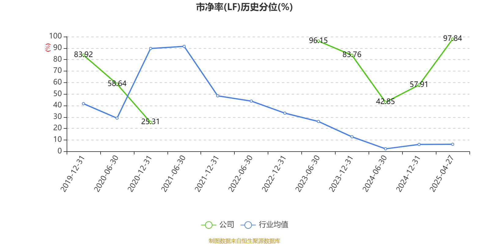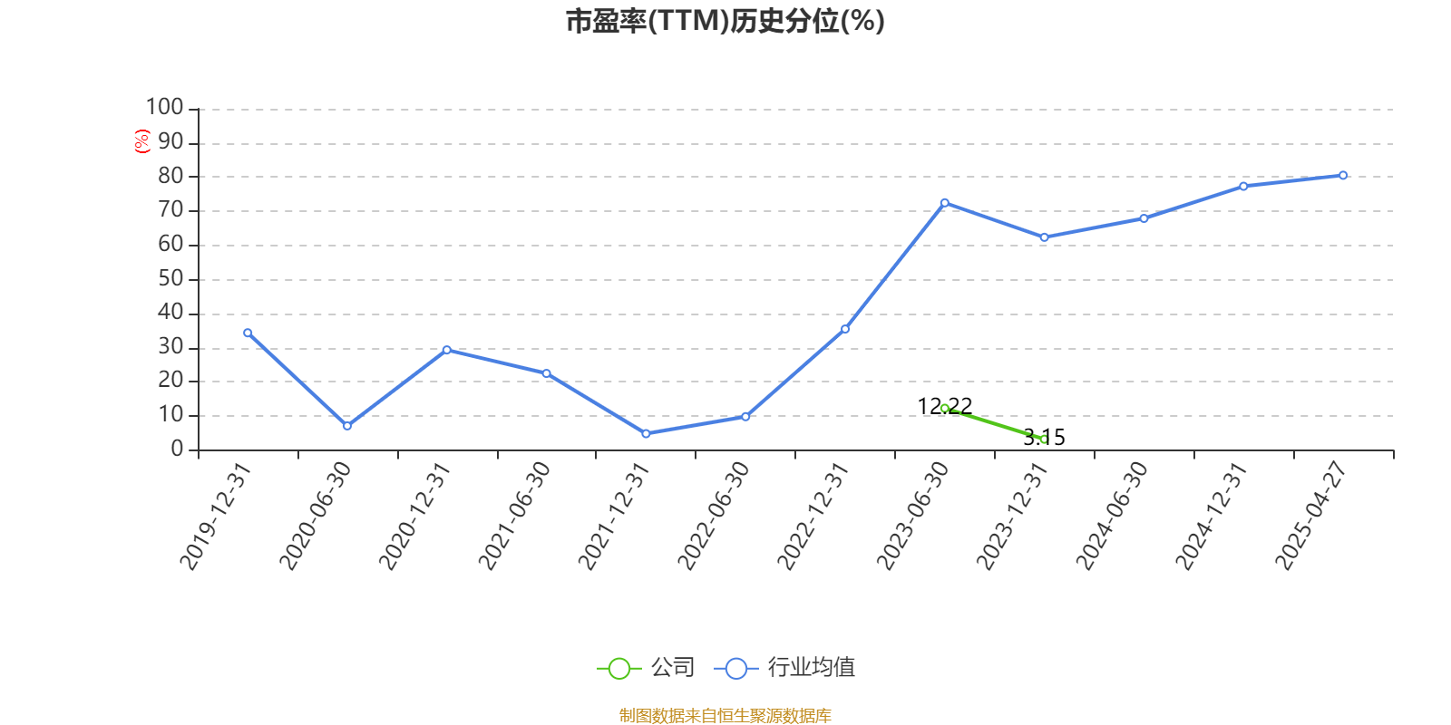 市盈率、市净率为负时,不显示当期分位数,会导致折线图中断。