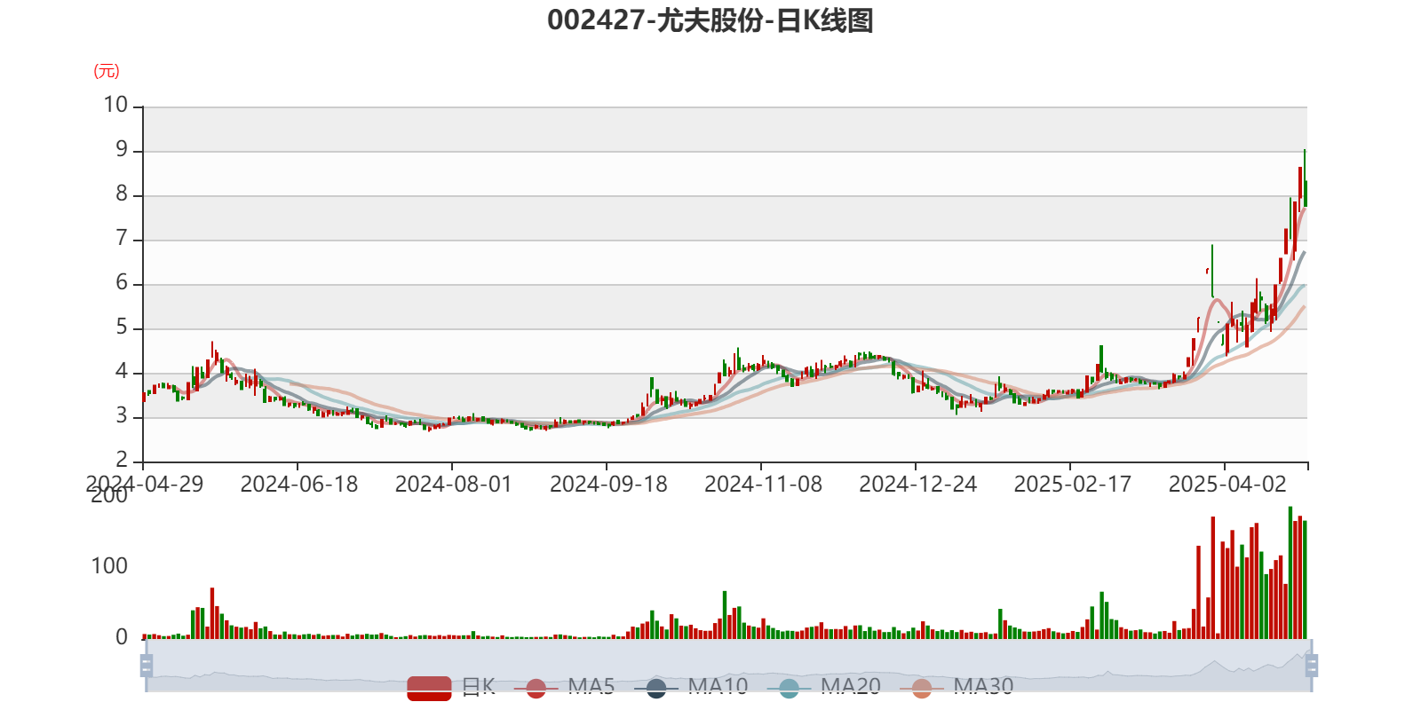 以4月25日收盘价计算,尤夫股份目前市盈率(TTM)约为-283.9倍,市净率(LF)约8.23倍,市销率(TTM)约3.35倍。