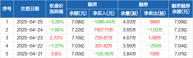 威孚高科融资融券信息显示,2025年4月25日融资净偿还1386.44万元;融资余额7.08亿元,较前一日下降1.92%。