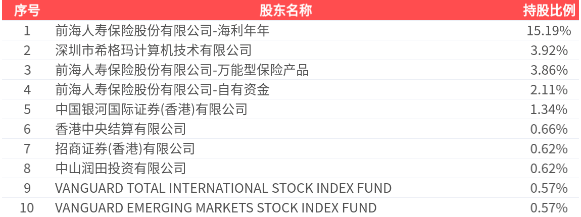公司股东户数为13.57万户,前十大股东持股数量为9.04亿股,占总股本比例为29.45%,前十大股东持股情况如下: