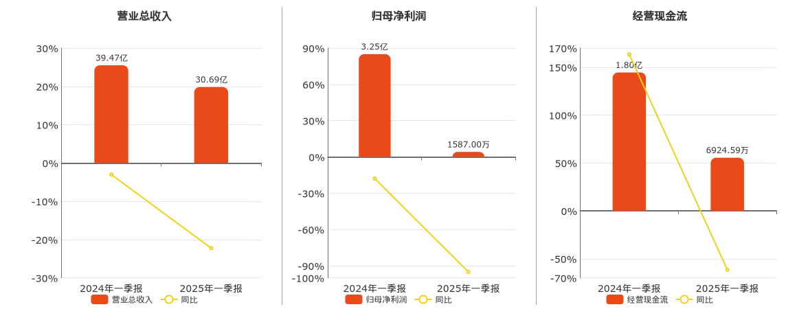 南玻A(000012.SZ)2025年一季报净利润为1587.00万元、较去年同期下降95.12%
