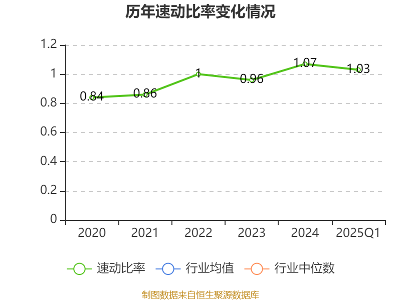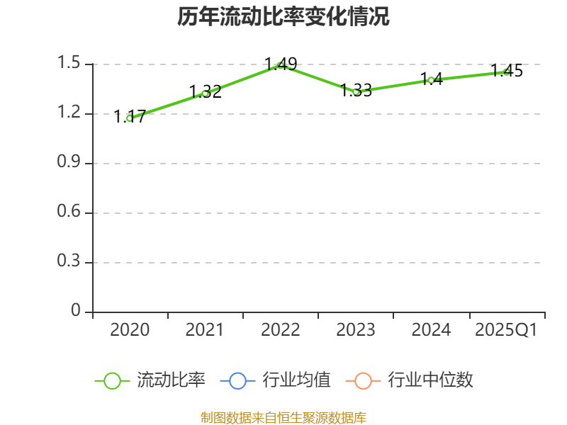 2025年第一季度,公司流动比率为1.45,速动比率为1.03。