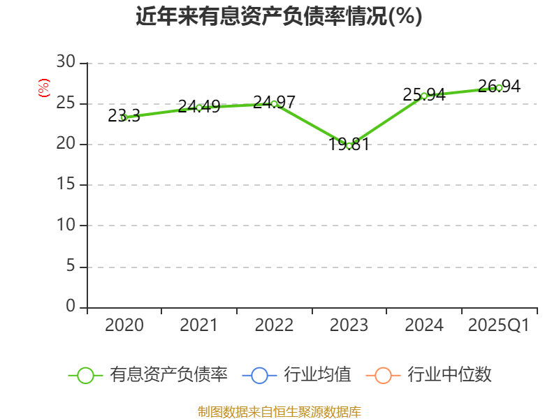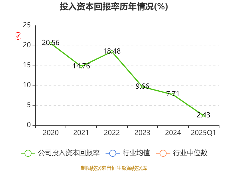 盈利能力方面, 2025年一季度公司加权平均净资产收益率为2.56%,同比上升0.69个百分点。公司2025年第一季度投入资本回报率为2.43%,较上年同期下降0.58个百分点。