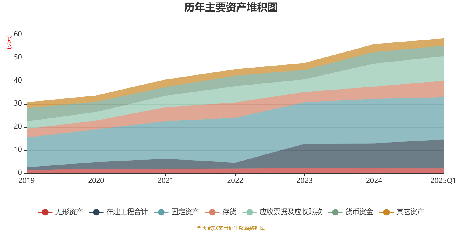 资产重大变化方面,截至2025年一季度末,公司固定资产较上年末减少4.83%,占公司总资产比重下降3.07个百分点;存货较上年末增加34.79%,占公司总资产比重上升2.74个百分点;在建工程合计较上年末增加15.32%,占公司总资产比重上升2.01个百分点;货币资金较上年末减少9.65%,占公司总资产比重下降1.22个百分点。