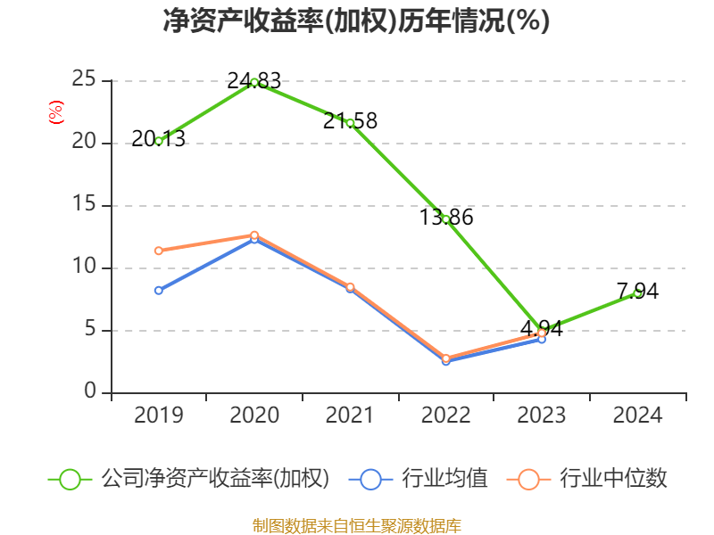 数据显示,2024年公司加权平均净资产收益率为7.94%,较上年同期上升3个百分点。公司2024年投入资本回报率为6.83%,较上年同期上升2.83个百分点。