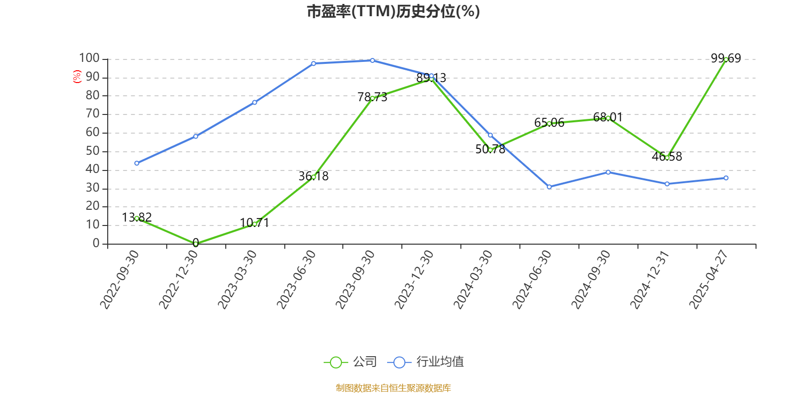 市盈率、市净率为负时,不显示当期分位数,会导致折线图中断。