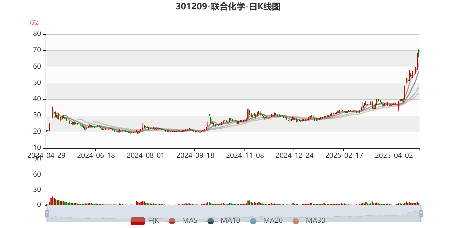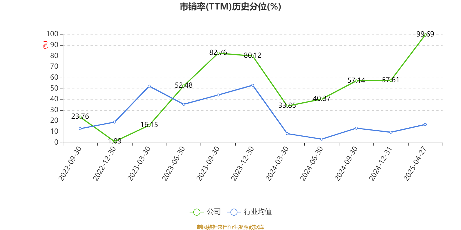 以4月25日收盘价计算,联合化学目前市盈率(TTM)约为97.96倍,市净率(LF)约7.58倍,市销率(TTM)约10.34倍。
