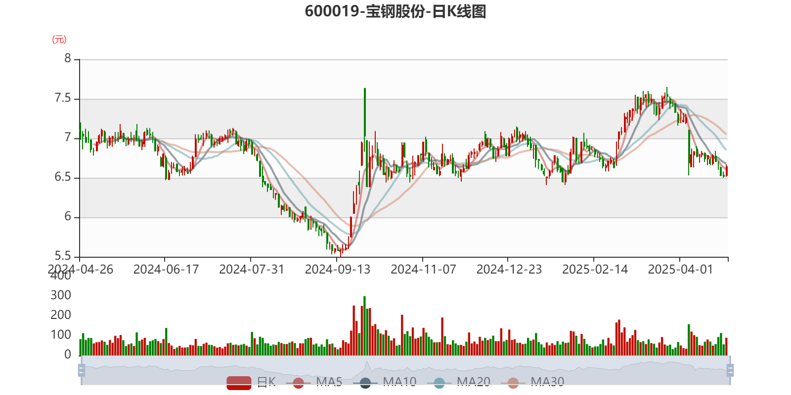 以4月25日收盘价计算,宝钢股份目前市盈率(TTM)约为19.76倍,市净率(LF)约0.73倍,市销率(TTM)约0.45倍。