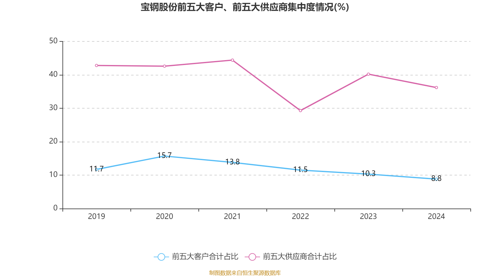 年报显示,2024年末的公司十大流通股东中,持股最多的为中国宝武钢铁集团有限公司,占比43.792%。在具体持股比例上,香港中央结算有限公司、华泰柏瑞沪深300交易型开放式指数证券投资基金、易方达沪深300交易型开放式指数发起式证券投资基金持股有所下降。