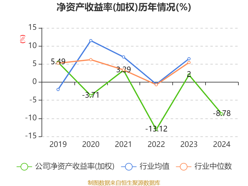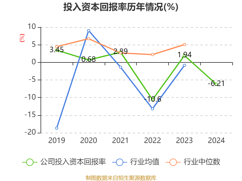数据显示,2024年公司加权平均净资产收益率为-8.78%,较上年同期下降10.78个百分点。公司2024年投入资本回报率为-6.21%,较上年同期下降8.15个百分点。