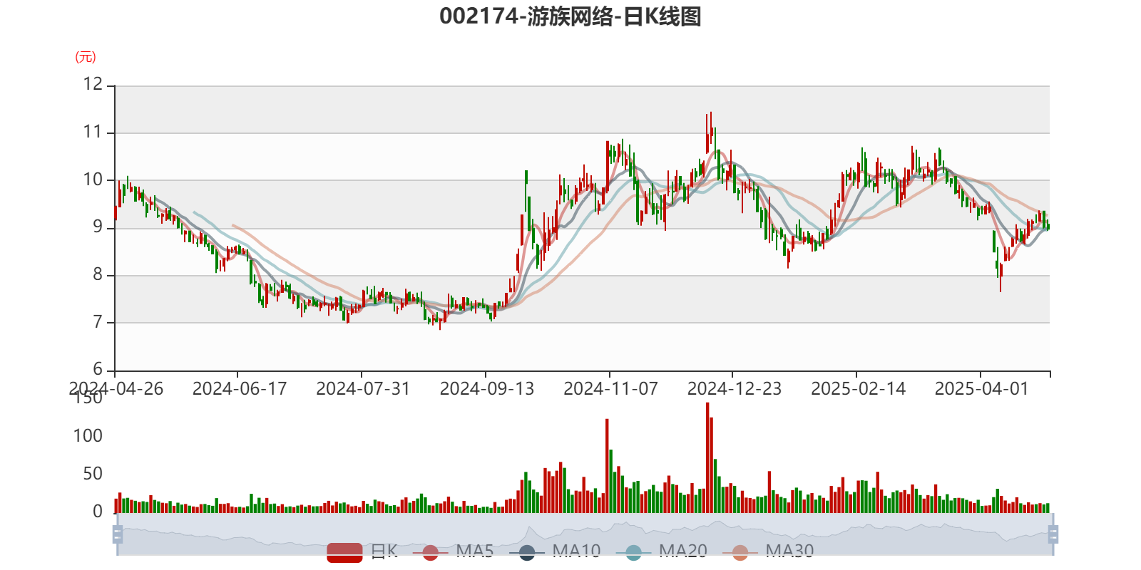 中证智能财讯游族网络(002174)4月26日披露2024年年度报告。2024年,公司实现营业总收入14.34亿元,同比下降11.75%;归母净利润亏损3.86亿元,上年同期盈利9136.52万元;扣非净利润亏损1.91亿元,上年同期盈利7489.35万元;经营活动产生的现金流量净额为3646.06万元,上年同期为-2.3亿元;报告期内,游族网络基本每股收益为-0.43元,加权平均净资产收益率为-8.78%。