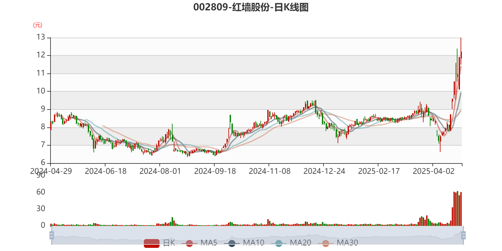以4月25日收盘价计算,红墙股份目前市盈率(TTM)约为52.64倍,市净率(LF)约1.54倍,市销率(TTM)约3.8倍。
