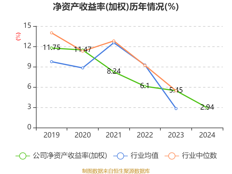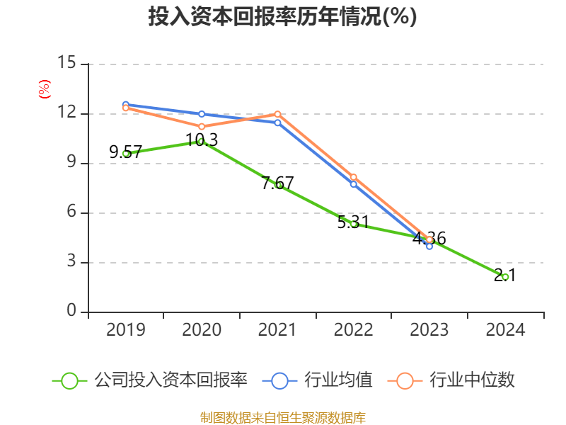 数据显示,2024年公司加权平均净资产收益率为2.94%,较上年同期下降2.51个百分点。公司2024年投入资本回报率为2.1%,较上年同期下降2.26个百分点。