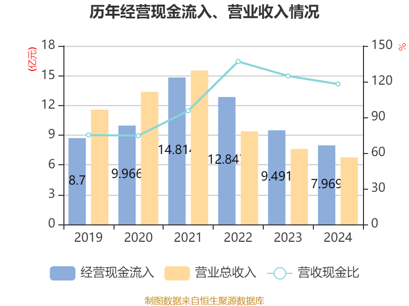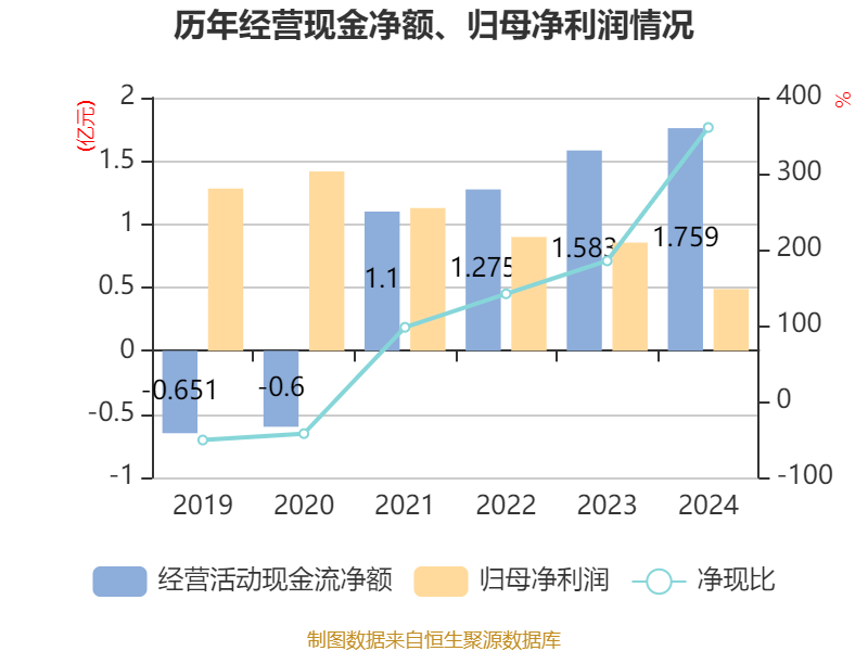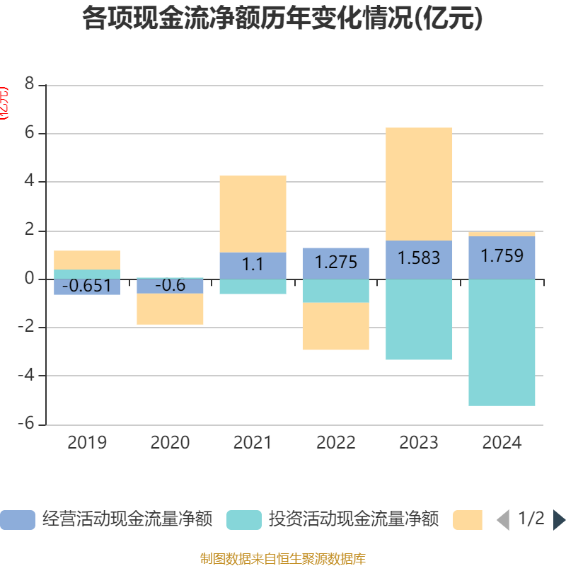截至2024年,公司经营活动现金流净额为1.76亿元,同比增长11.1%;筹资活动现金流净额1711.21万元,同比减少4.48亿元;投资活动现金流净额-5.24亿元,上年同期为-3.33亿元。