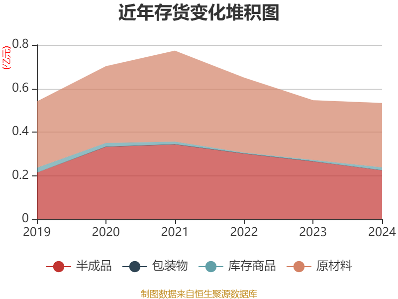 从存货变动来看,截至2024年末,公司存货账面价值为5329.12万元,占净资产的3.19%,较上年末减少134.18万元。其中,存货跌价准备为160.19万元,计提比例为2.92%。