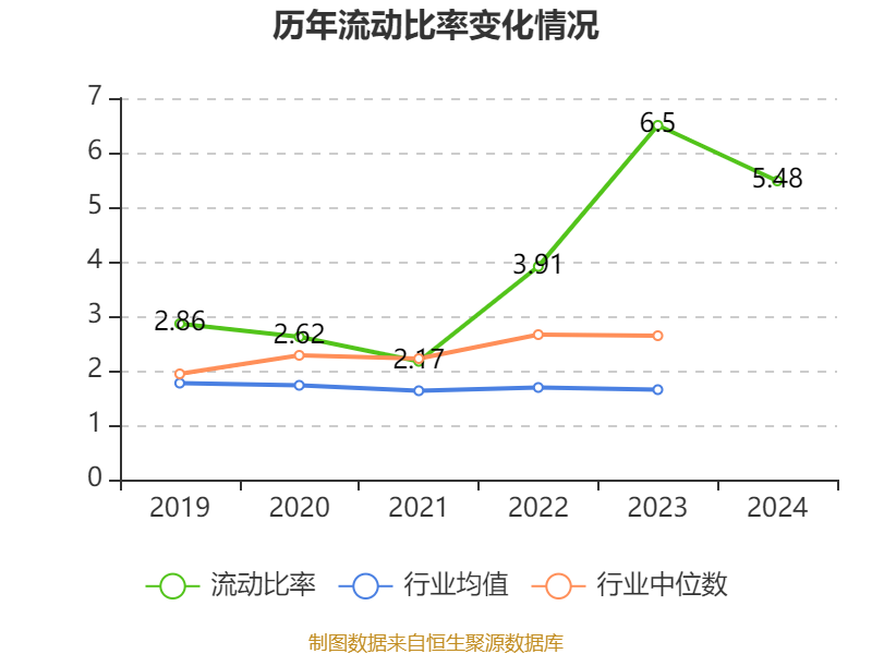 2024年,公司流动比率为5.48,速动比率为5.3。