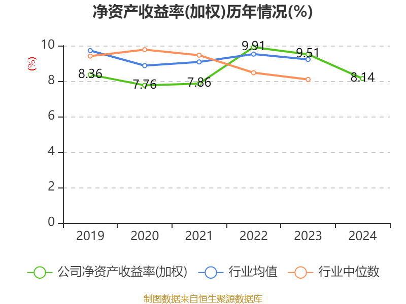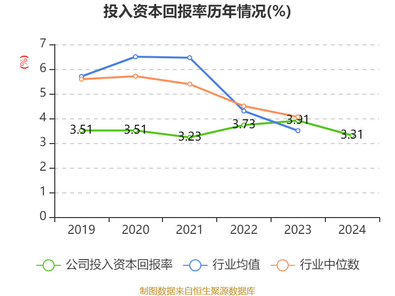 数据显示,2024年公司加权平均净资产收益率为8.14%,较上年同期下降1.37个百分点。公司2024年投入资本回报率为3.31%,较上年同期下降0.6个百分点。