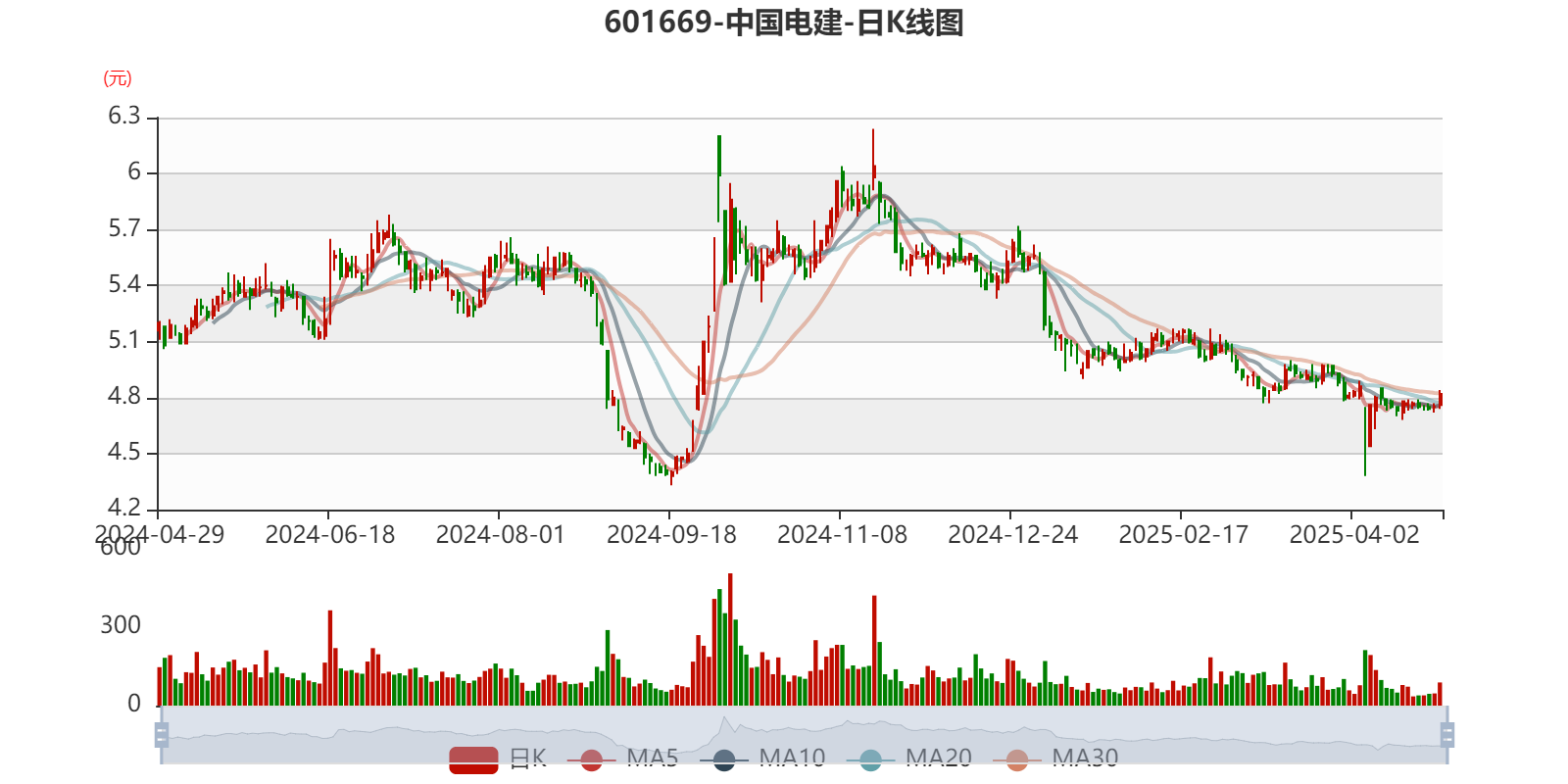 以4月25日收盘价计算,中国电建目前市盈率(TTM)约为6.91倍,市净率(LF)约0.5倍,市销率(TTM)约0.13倍。