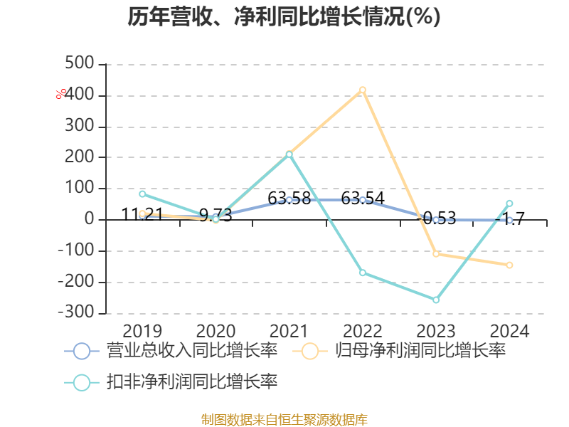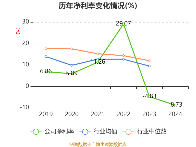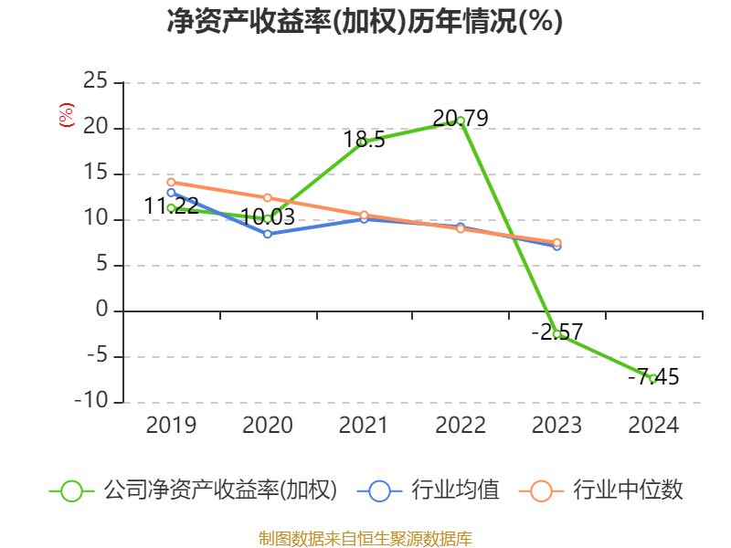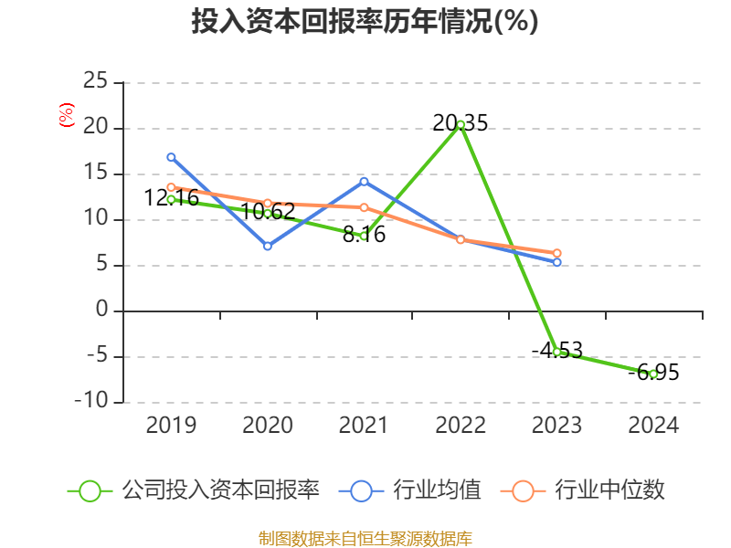数据显示,2024年公司加权平均净资产收益率为-7.45%,较上年同期下降4.88个百分点。公司2024年投入资本回报率为-6.95%,较上年同期下降2.42个百分点。