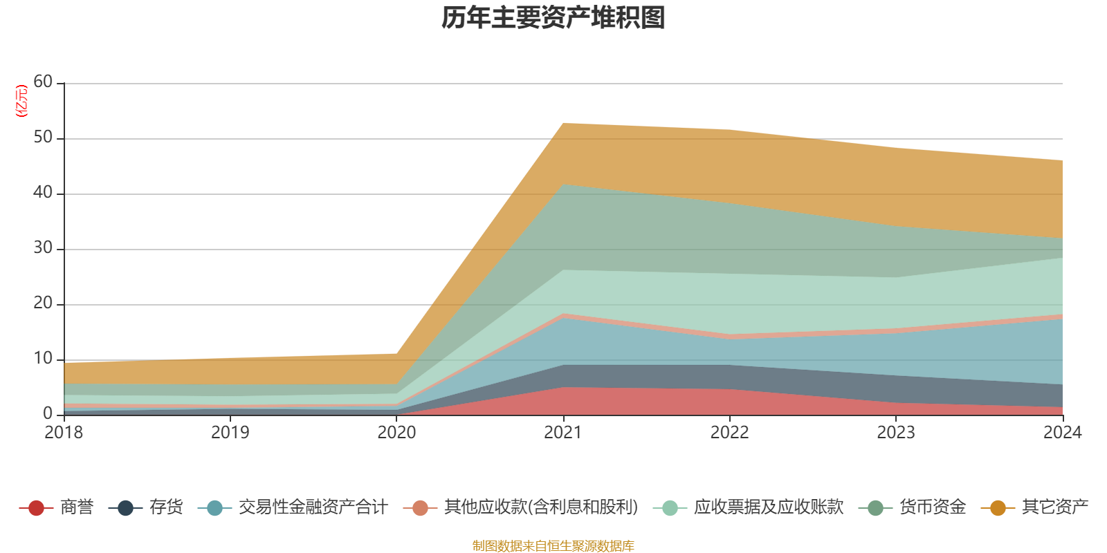 资产重大变化方面,截至2024年末,公司货币资金较上年末减少61.85%,占公司总资产比重下降11.53个百分点;交易性金融资产合计较上年末增加55.15%,占公司总资产比重上升9.95个百分点;应收票据及应收账款较上年末增加10.6%,占公司总资产比重上升3.07个百分点;商誉较上年末减少36.06%,占公司总资产比重下降1.47个百分点。