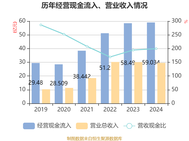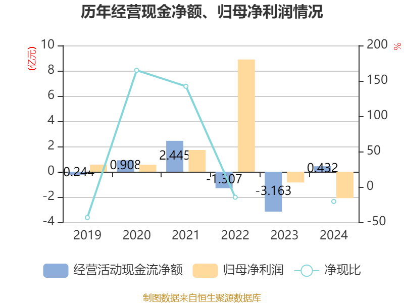 截至2024年,公司经营活动现金流净额为4315.88万元,同比增加3.59亿元;筹资活动现金流净额-2603.27万元,同比增加1237.83万元;投资活动现金流净额-5.13亿元,上年同期为-3299.75万元。