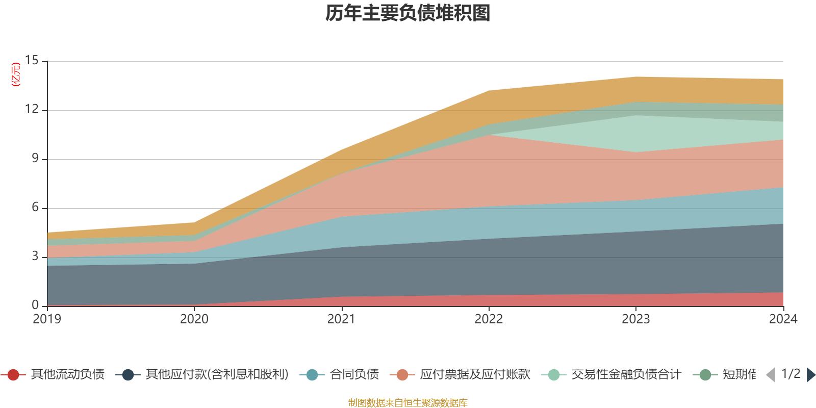 负债重大变化方面,截至2024年末,公司交易性金融负债合计较上年末减少51.72%,占公司总资产比重下降2.3个百分点;其他应付款(含利息和股利)较上年末增加9.61%,占公司总资产比重上升1.2个百分点;合同负债较上年末增加16.52%,占公司总资产比重上升0.89个百分点;短期借款较上年末增加28.42%,占公司总资产比重上升0.6个百分点。