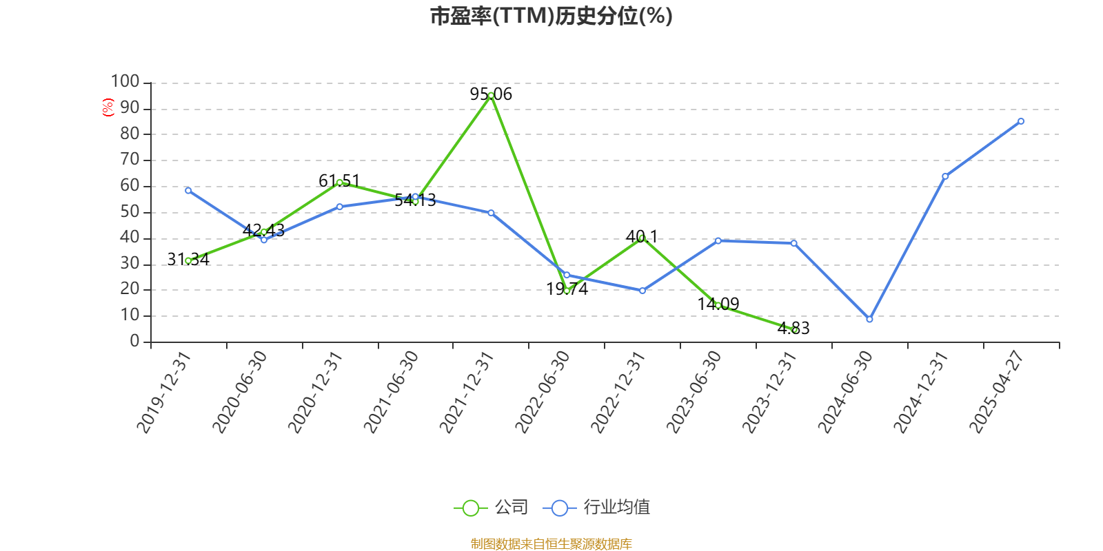 市盈率、市净率为负时,不显示当期分位数,会导致折线图中断。