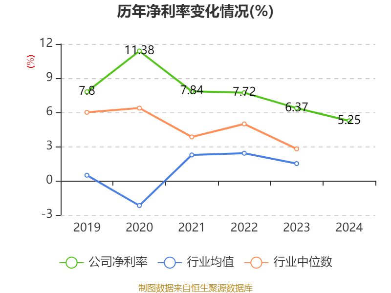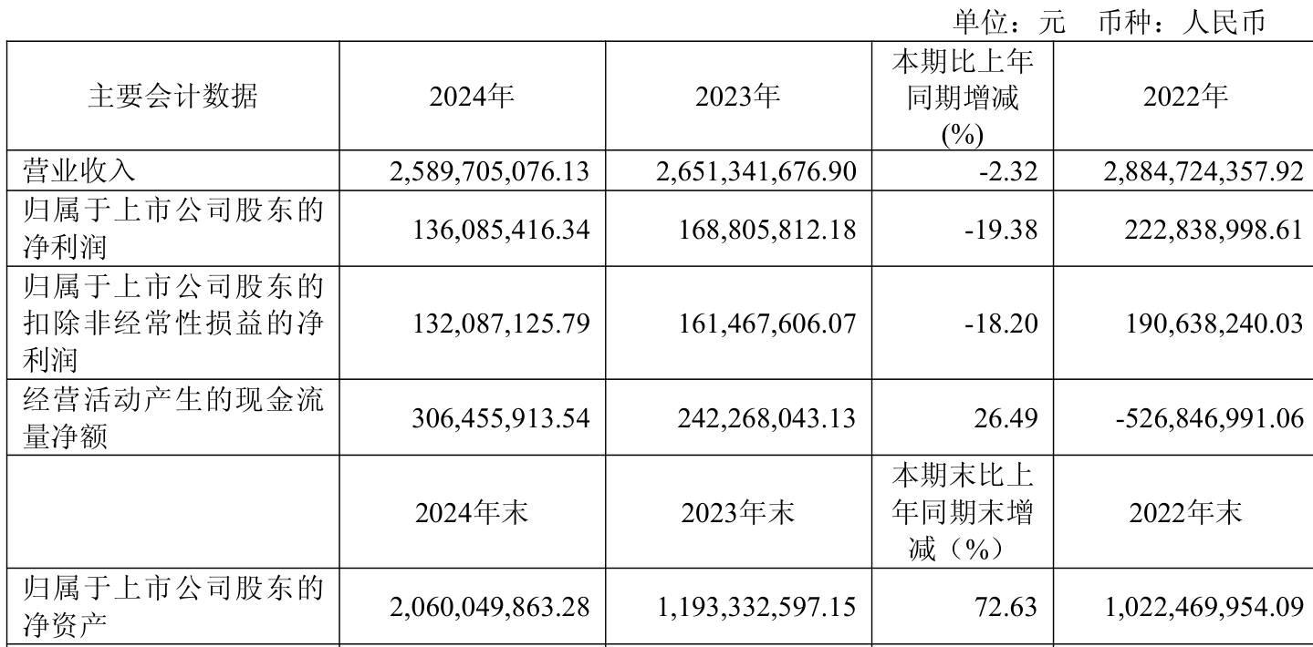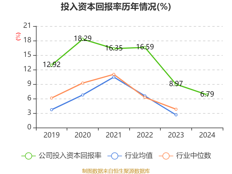 数据显示,2024年公司加权平均净资产收益率为10.79%,较上年同期下降4.45个百分点。公司2024年投入资本回报率为6.79%,较上年同期下降2.18个百分点。