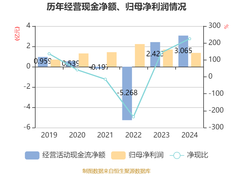 截至2024年,公司经营活动现金流净额为3.06亿元,同比增长26.49%;筹资活动现金流净额4.63亿元,同比增加6.81亿元;投资活动现金流净额-1941.5万元,上年同期为-6196.67万元。