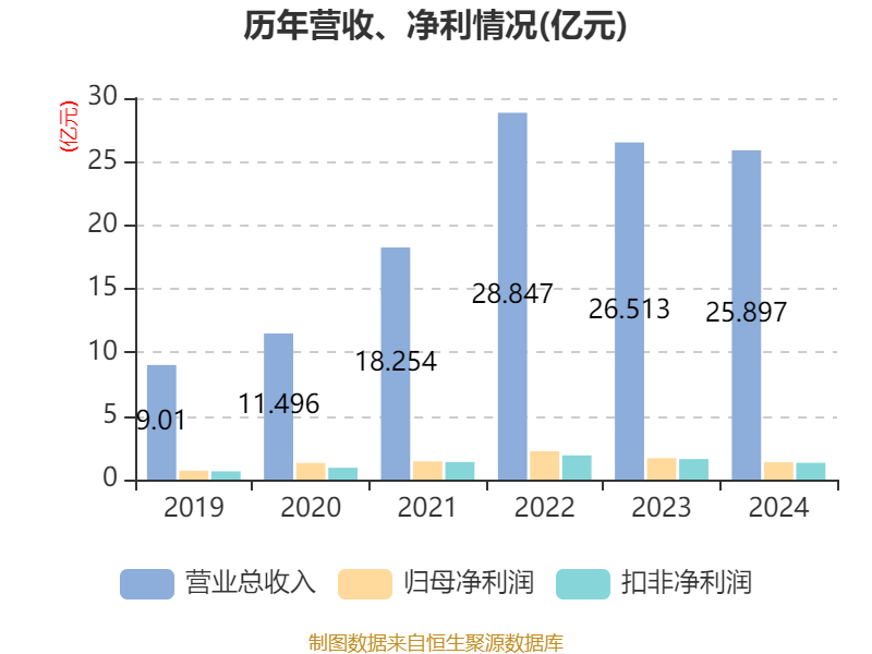 中证智能财讯天和磁材(603072)4月26日披露2024年年度报告。2024年,公司实现营业总收入25.9亿元,同比下降2.32%;归母净利润1.36亿元,同比下降19.38%;扣非净利润1.32亿元,同比下降18.20%;经营活动产生的现金流量净额为3.06亿元,同比增长26.49%;报告期内,天和磁材基本每股收益为0.69元,加权平均净资产收益率为10.79%。